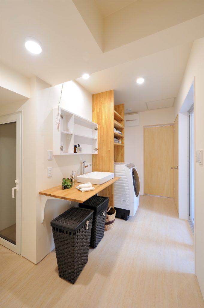 洗面台はオリジナルで作りました。洗面台のボックスには鏡が付きます。