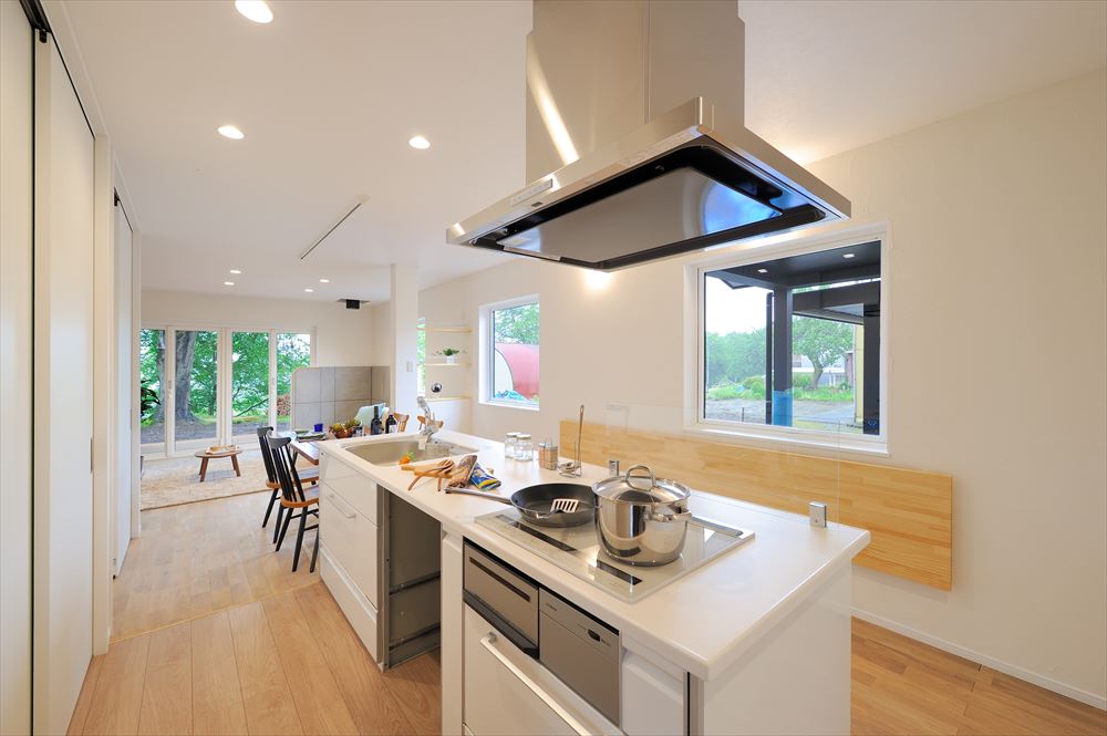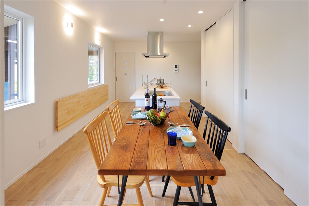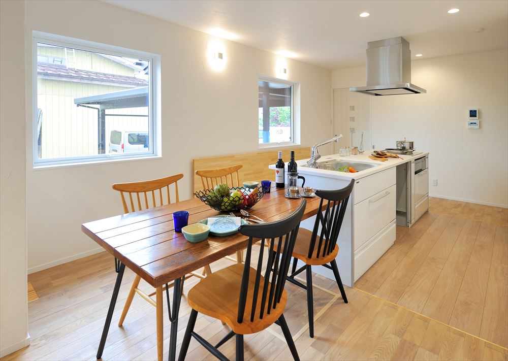 キッチンからテーブルまでの動線が一本で食事の支度もかたずけもスムーズそうですね。
