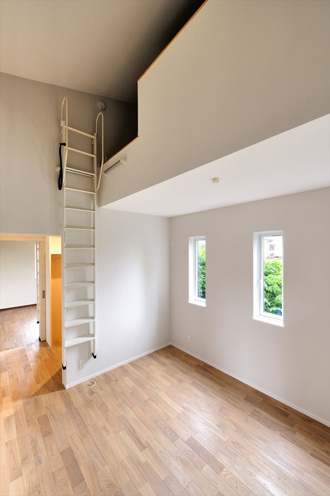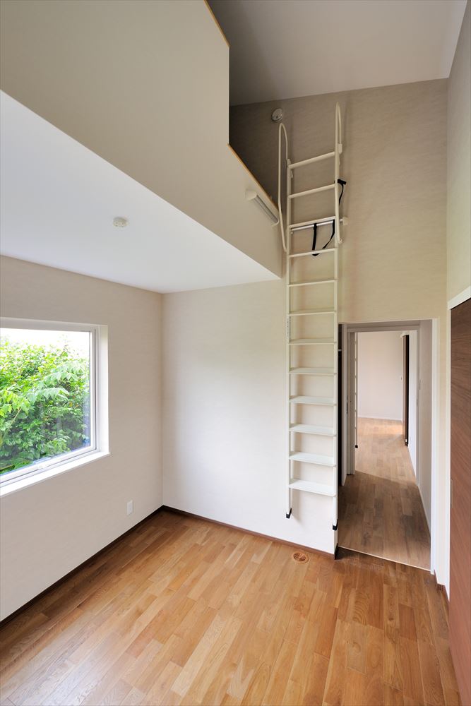 ロフトに上がるハシゴです。普段はこんな風に壁にかけてあります。