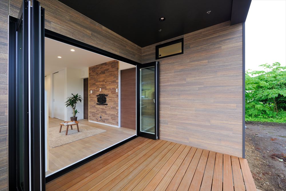 大きな掃き出しの窓の向こうにはウッドデッキがあります。
