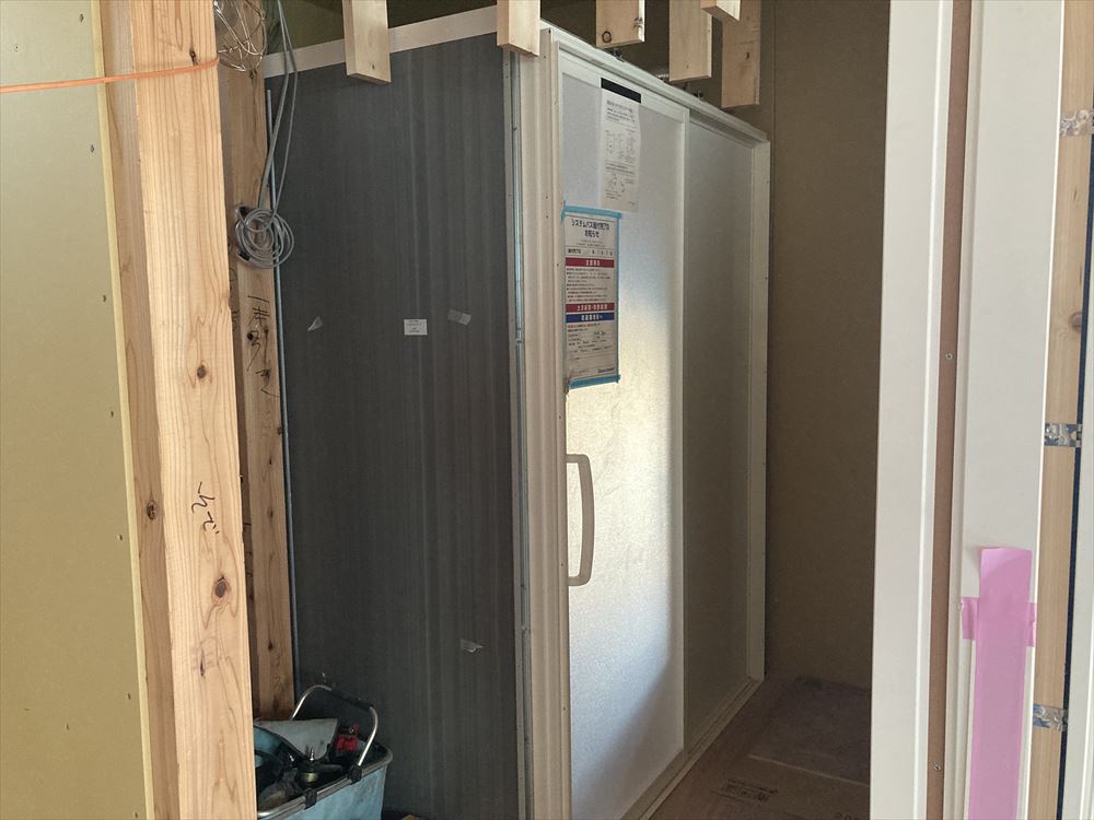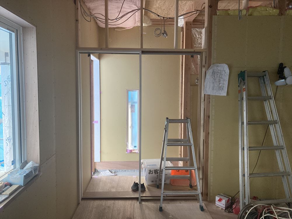 建具枠と壁下地がついてます。建具は引き戸が多いのですが、今回は特に吊り式が多いので敷居がなく掃除が楽です。ルンバも思う存分活躍してくれることでしょう。