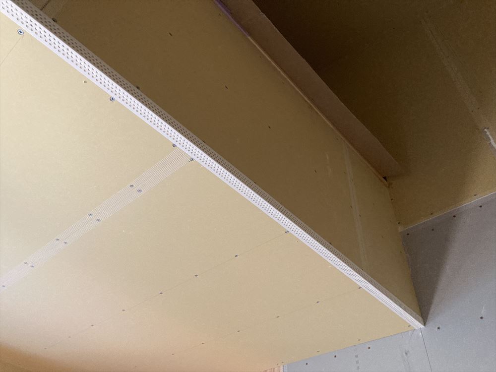クロスの下地は、つなぎ目にテープ、コーナーにはカバーを付けます。