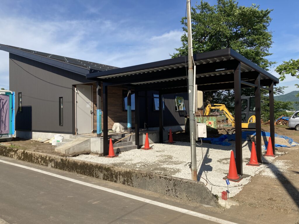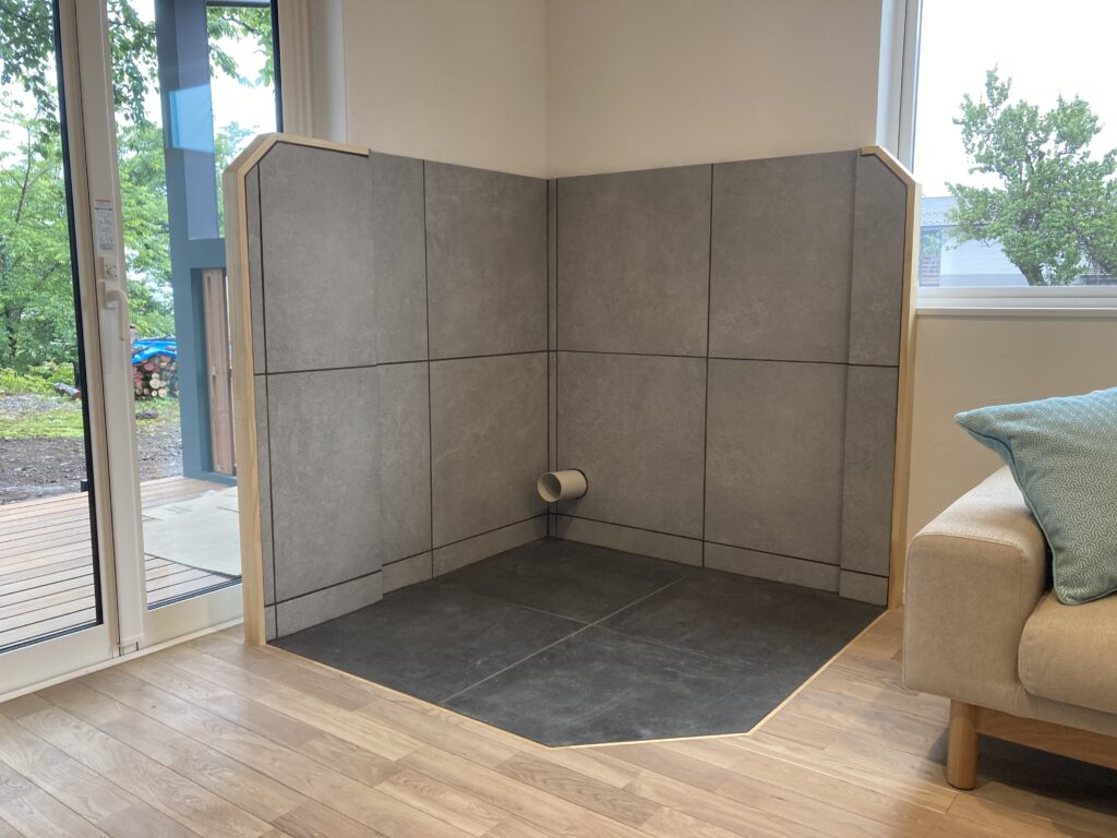 6月1日にカーポートができました。 すぐにコングリートを打ちたいところですが、乗り入れ部分を作らなければなので今は打てません。 薪ストーブを置く部分のタイル張りもできました。下地を作るのに大工さんが苦労してました。 照明も入りました。やはり雰囲気が違います。 造作部分にインテリアを置きました。リアリティがあると、どんな空間なのかはっきりして気持ち良いです。 お引き渡しまでもうじきです。