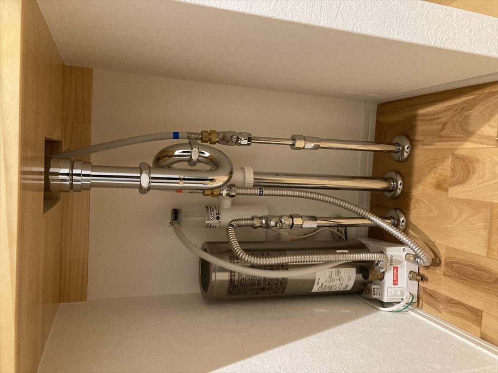 温水配管もしておりますが、手洗いを始めてからお湯が出るまでにかなりの時間がかかります。