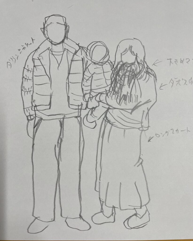 お客様の写真を送り作成していただきます。時期によっては写真の季節とは違う季節に見学会となりますので、その時はお客様の服の好みなどを反映してもらいます。