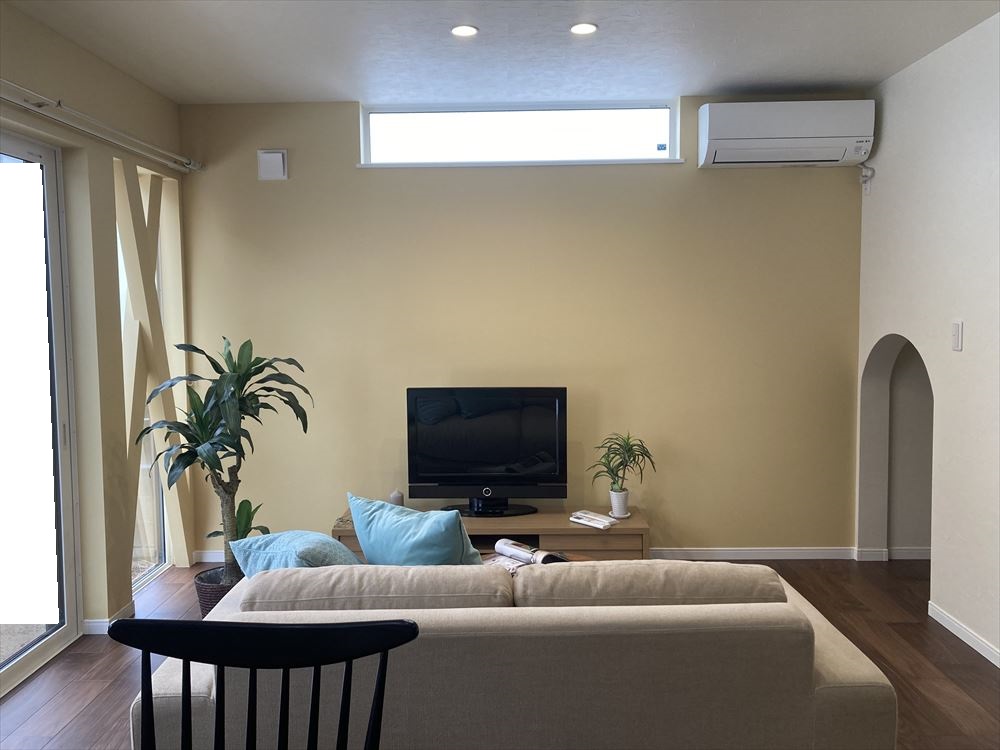 左の筋交い部分も大工さんと内装屋さんが苦労して仕上げてくれたところです。ありがとうございました。
