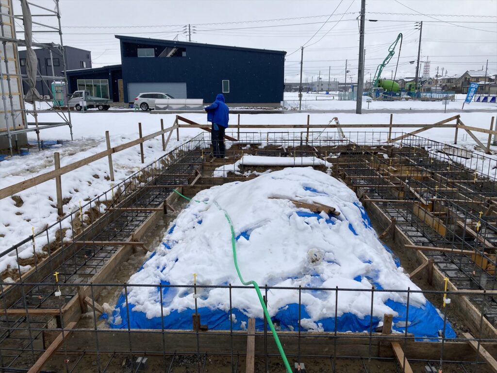 ST様邸新築工事の基礎工事です。配筋工事が終わり、JIO日本住宅保証検査機構による現場検査が行われました。図面通りに配筋がされているかどうか、JIOから派遣された検査員の方がチェックをします。