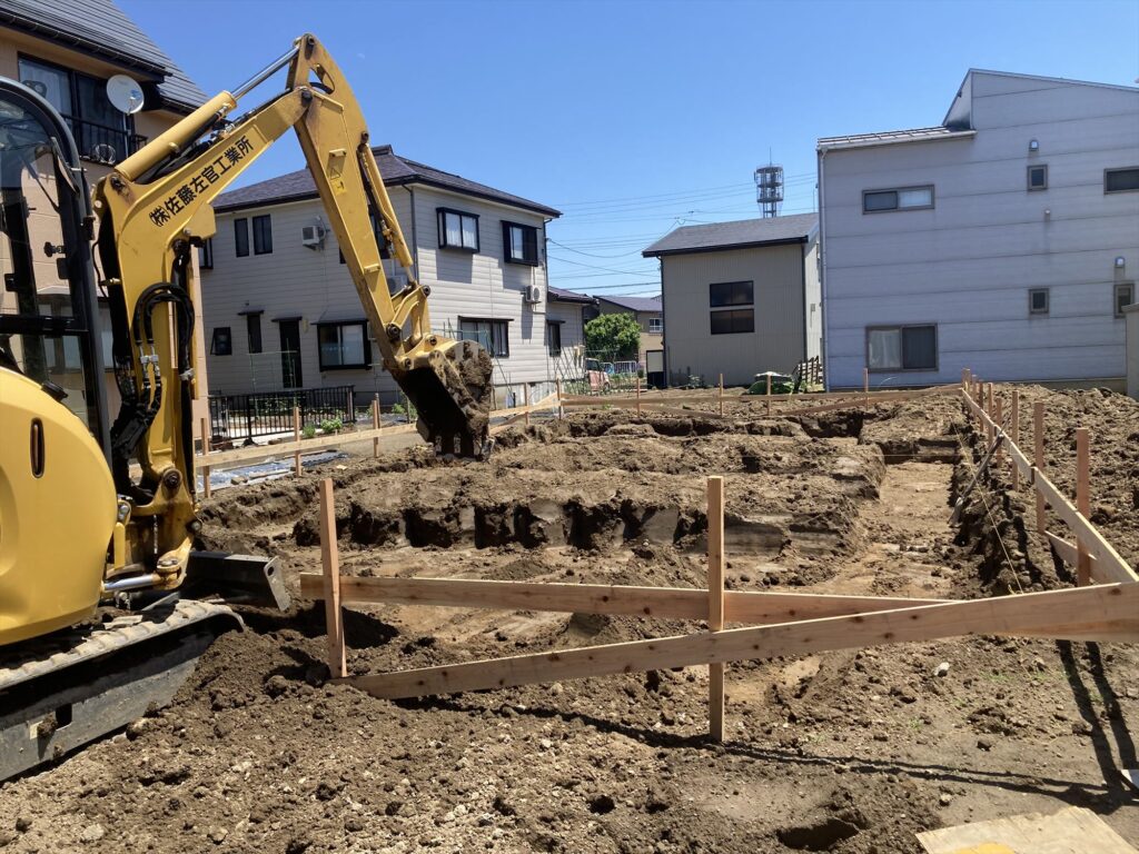 掘ると地盤改良の杭頭がきれいにそろっているのが見て取れます。