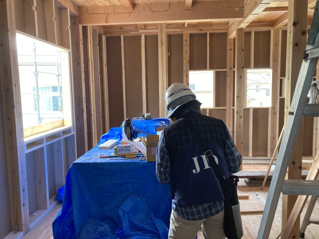 ガクブル震えながら足場の一番上まで上がり撮影しました。高いところは好きですが、怖いです。明日はいよいよ建前です。