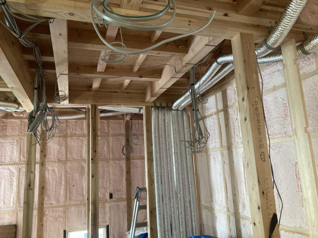 屋内の換気用の配管も設置しました。