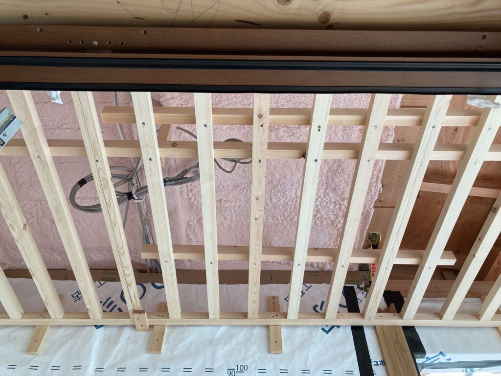 今回は大きな梁もあるので、そちらを交わしつつ設置します。