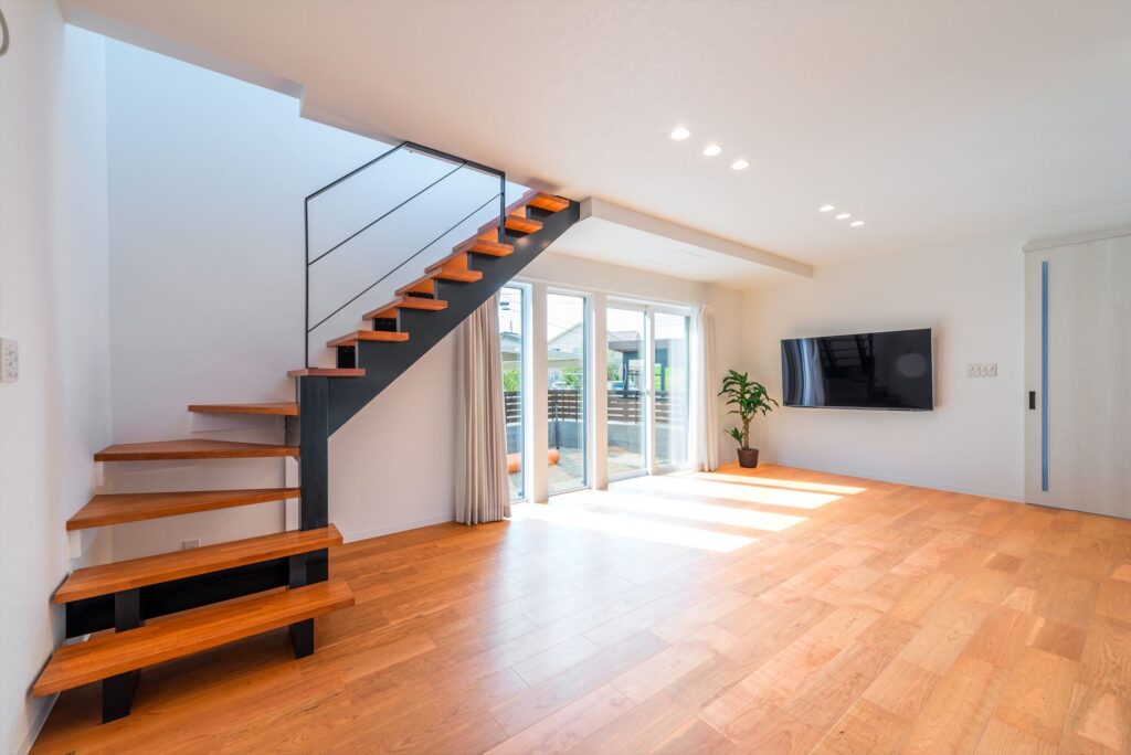 玄関ホールからリビングに入ったところです。奥行のある、広々とした空間になりました。