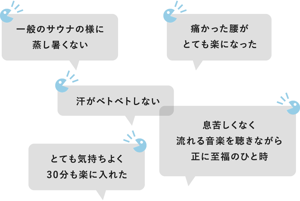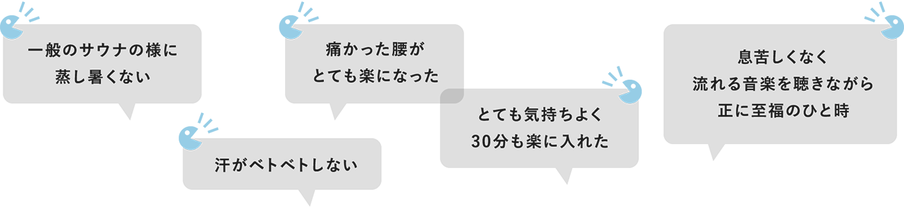 息苦しくなく、汗もべとつかない快適なサウナです。