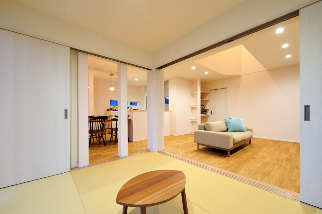 和室です。リビング、和室、ダイニングがつながり、家族それぞれが好きな場所で好きなことができます。