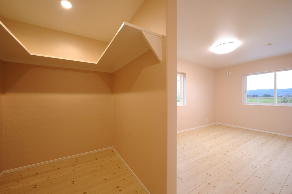 寝室です。奥に収納があります。周囲の景観が良いので窓が絵の枠になるようなタイプを多用しました。