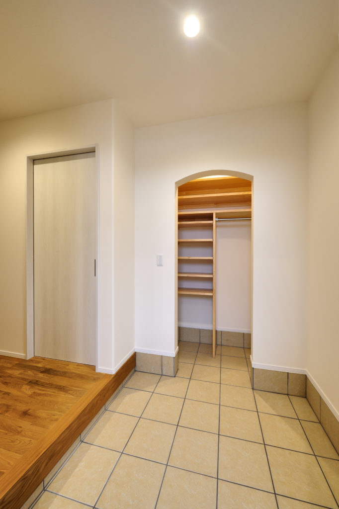 リビング前に収納を設けることで、お出かけ前の準備が楽になります。小学校低学年までの子供のかばんもこちらに置くようにすれば散らかし防止にもなります。