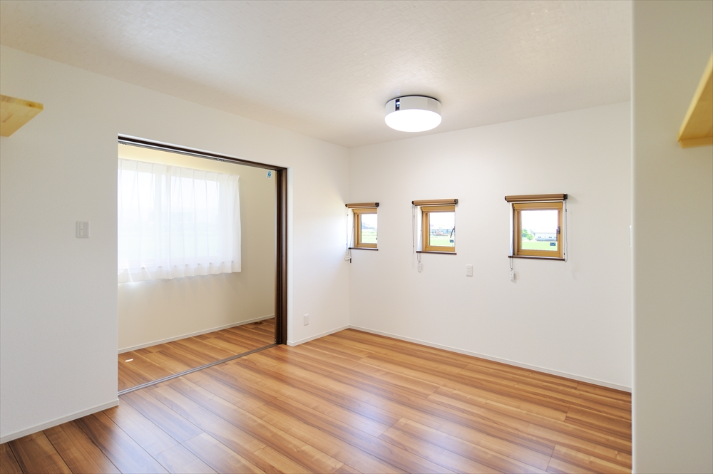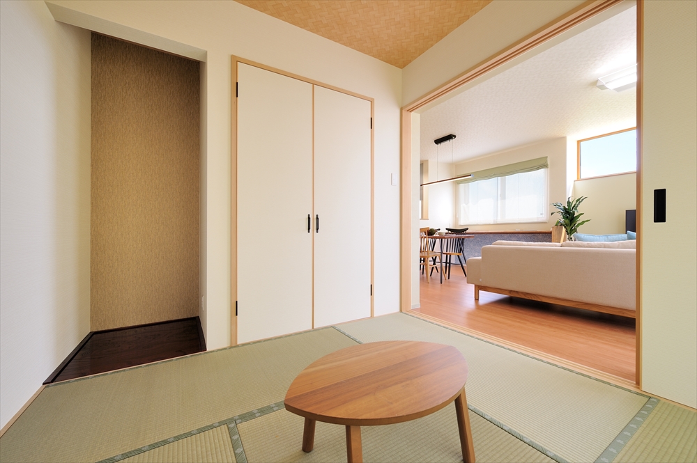 リビングとつながっている和室です。小さなお子さんとお昼寝するにも良いです。押し入れと仏間もあります。