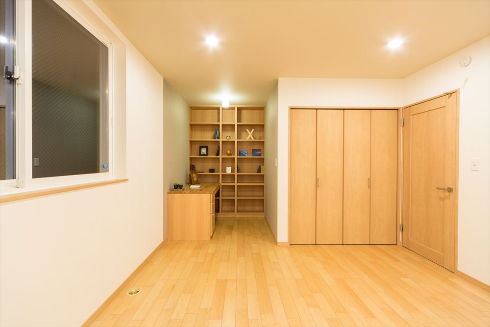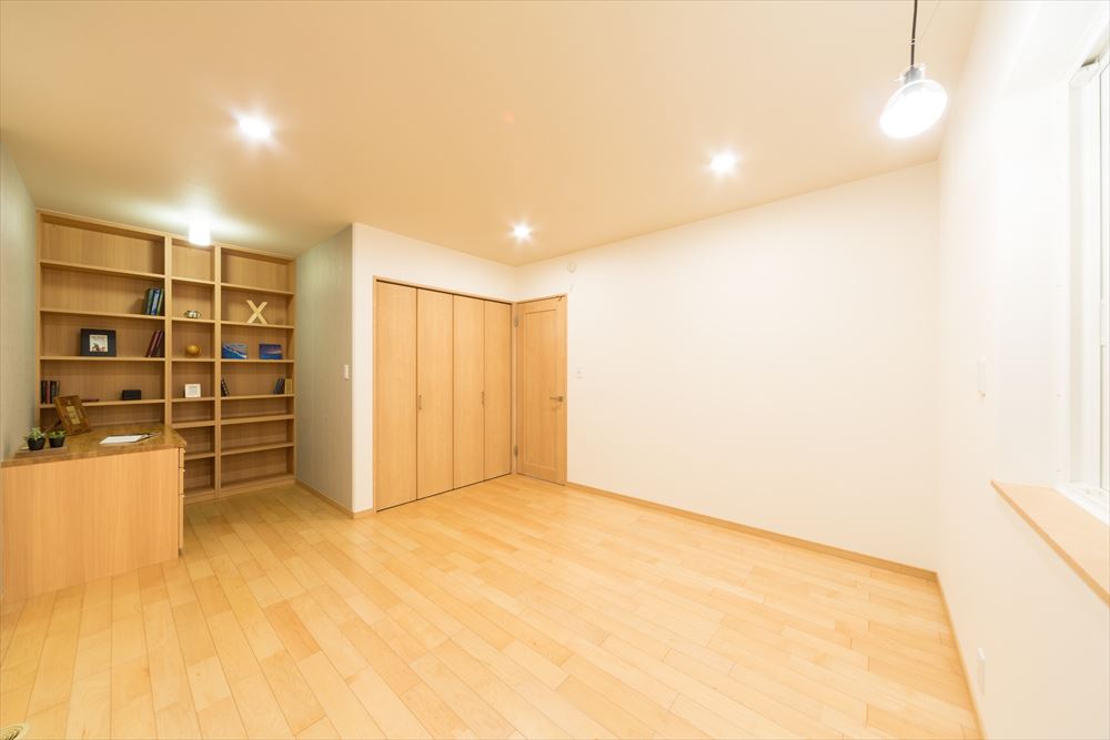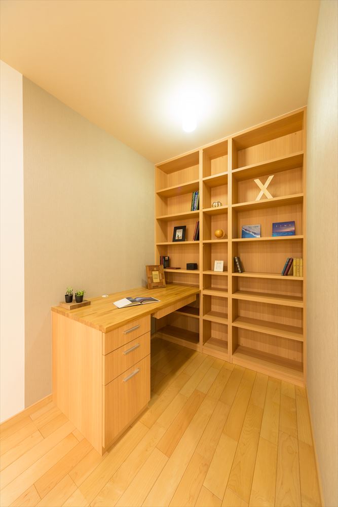 2階の書斎は、様々な書籍にも対応できる十分なストック量がある本棚を設置。資料の置き場に困りません。
