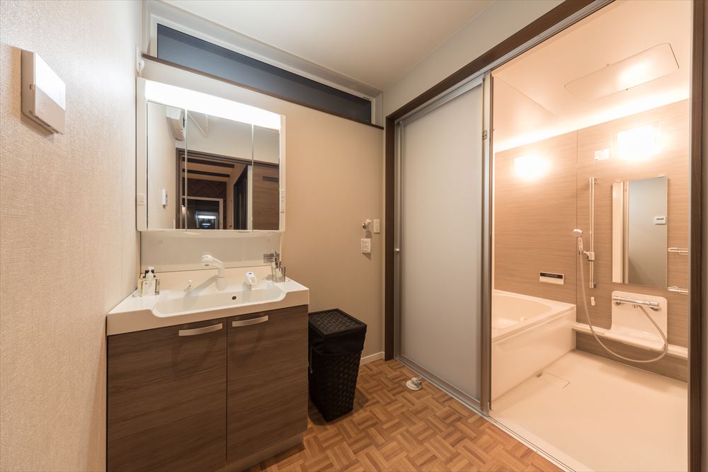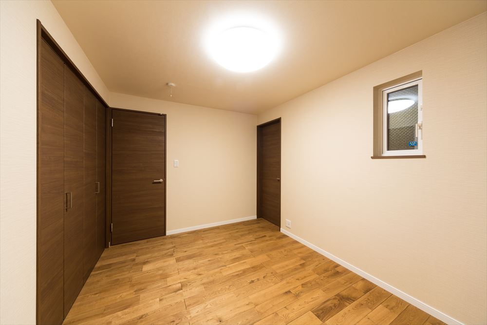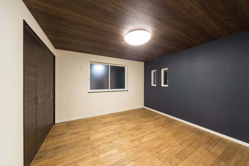 壁のクロスも一面だけカラーを変えて、建具の雰囲気に合わせてあります。